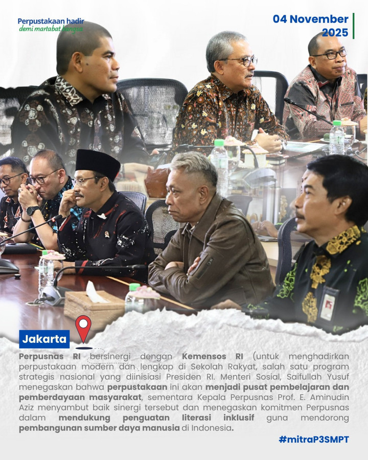 Dalam pertemuan dengan Kepala Perpustakaan Nasional pada tanggal 4 November 2025, Menteri Sosial secara langsung meminta agar Perpustakaan Nasional membantu menghadirkan perpustakaan Sekolah Rakyat sesuai standar. Hasil pertemuan tersebut kemudian dilaporkan kepada Presiden. Presiden sempat mempertanyakan alasan pelibatan Perpustakaan Nasional, dan dijelaskan bahwa Perpustakaan Nasional memiliki keahlian di bidang perpustakaan dan literasi. Pada peluncuran Sekolah Rakyat di Banjarbaru, Presiden menyampaikan apresiasi atas kerja sama antarkementerian dan lembaga yang berjalan kompak.