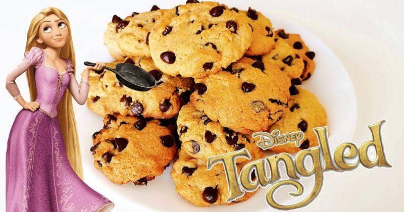 Film Tangled menyajikan karakter Rapunzel yang suka memasak. Salah satu makanan yang disajikannya adalah choco cookies. Berikut bahan dan cara membuatnya: